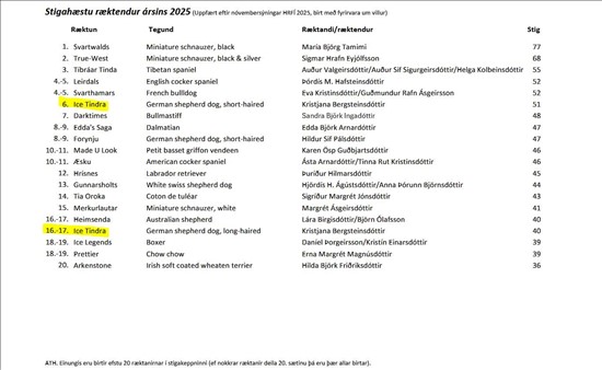 í Topp 20 á lista hjá HRFÍ, en það tókst engum öðrum en okkur að koma 2 afbrigðum í topp 20 lista árið 2025 ??